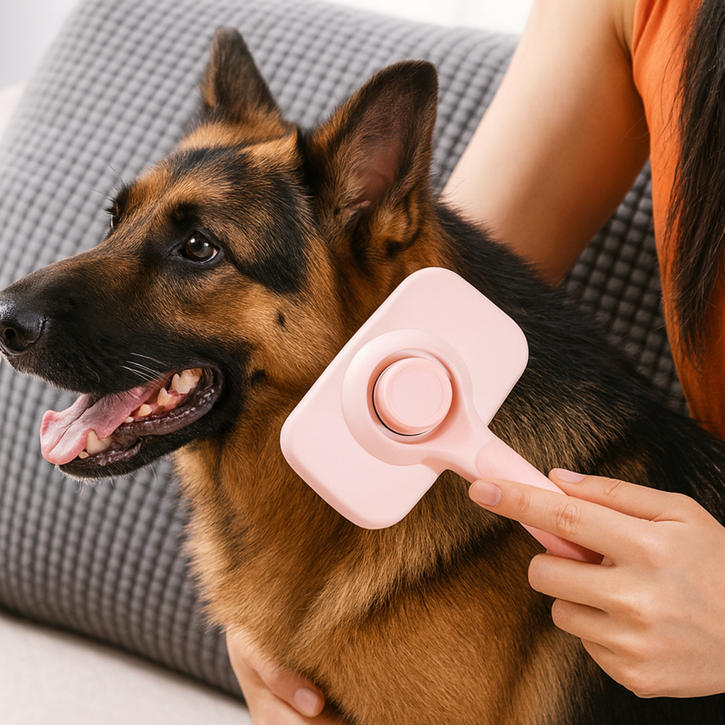Keep your pet’s coat smooth, shiny, and tangle-free with the Shepherd’s Choice Self-Cleaning Slicker Brush — a gentle, effective grooming tool that removes loose hair, dander, and knots while protecting sensitive skin.
